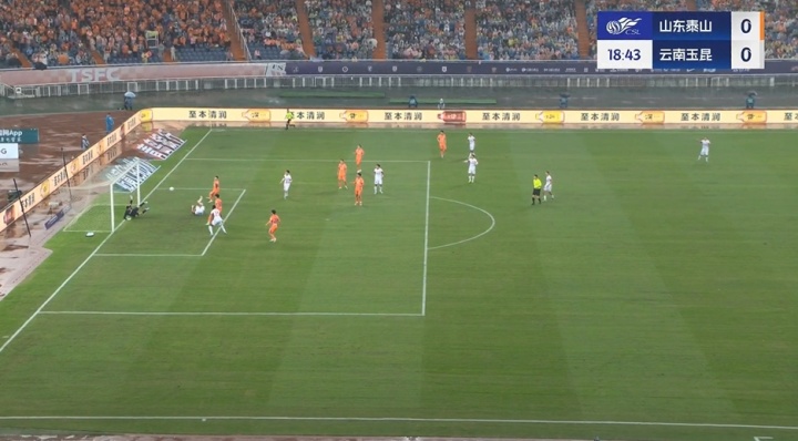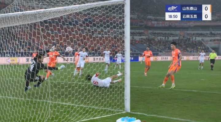 比赛第18分钟,玉昆边路起球传中,侯永永近距离头球攻门被王大雷挡出。